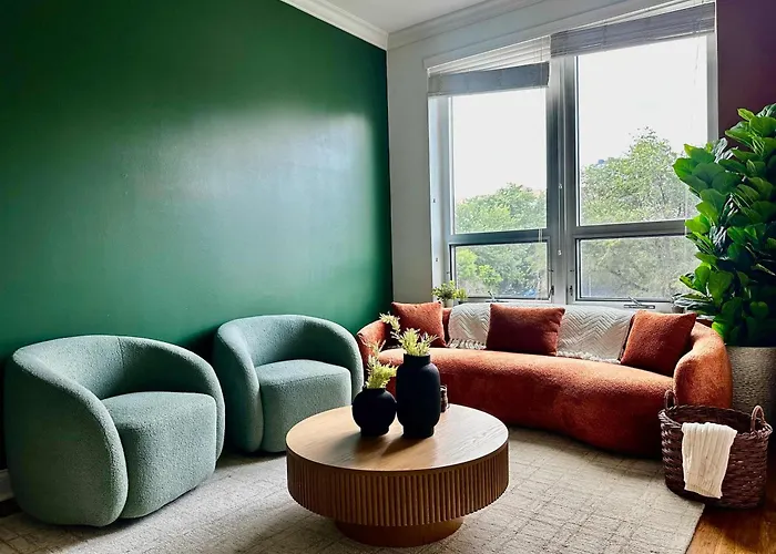 Die 84 m² große Ferienwohnung Gym Garage Parking Balcony Sleeps 4 Chicago in Chicago befindet sich rund 4 Kilometer vom McCormick Place Kongresszentrum und circa 500 Meter vom Museum of Holography-Chicago entfernt. Die Gäste können den WLAN sowohl für geschäftliche als auch für private Zwecke nutzen.